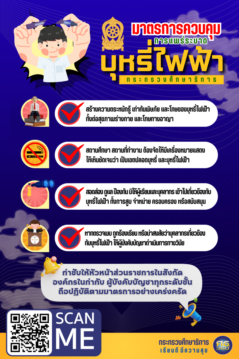 จากสถานการณ์การแพร่ระบาดของบุหรี่ไฟฟ้ามีความรุนแรงมากขึ้น ส่งผลกระทบต่อสุขภาพและอารมณ์ โดยเฉพาะอย่างยิ่งในกลุ่มของนักเรียนและนักศึกษา ซึ่งในคราวประชุมคณะรัฐมนตรี เมื่อวันที่ 9 เมษายน 2567 คณะรัฐมนตรีเห็นขอบตามที่นายกรัฐมนตรีเสนอ มอบหมายให้กระทรวงสาธารณสุขร่วมกับกระทรวงศึกษาธิการ กระทรวงการอุดมศึกษา วิทยาศาสตร์ วิจัยและนวัตกรรม และหน่วยงานที่เกี่ยวข้อง กำหนดมาตรการป้องกันการเข้าถึงและใช้บุหรี่ไฟฟ้าในสถานศึกษาทุกระดับ